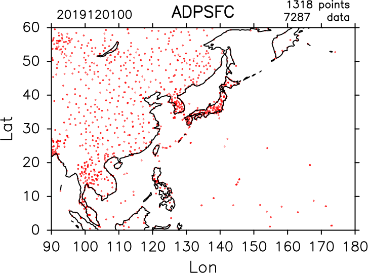 また上記のように変数間の物理的な関係を考慮することによっても、風上での観測値を風下の地点の物理量の推定に用いるなどして、広い範囲の解析値に観測の情報を反映させることができます。